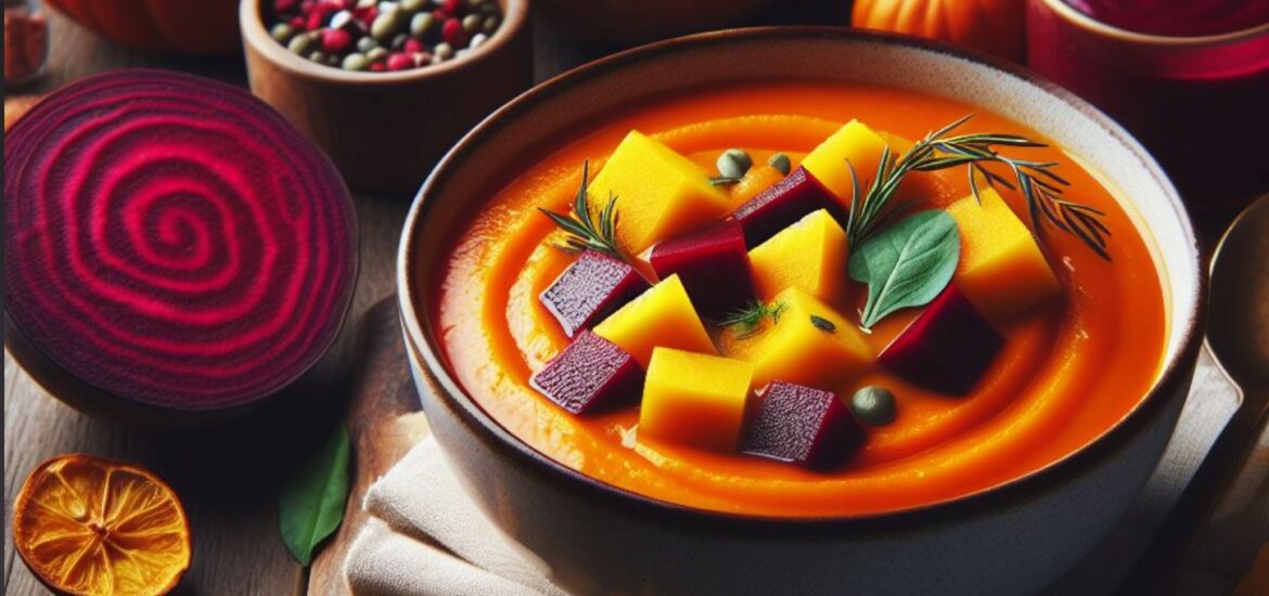 - Toss in the diced pumpkin, cubed beetroot, and sliced parsnips.