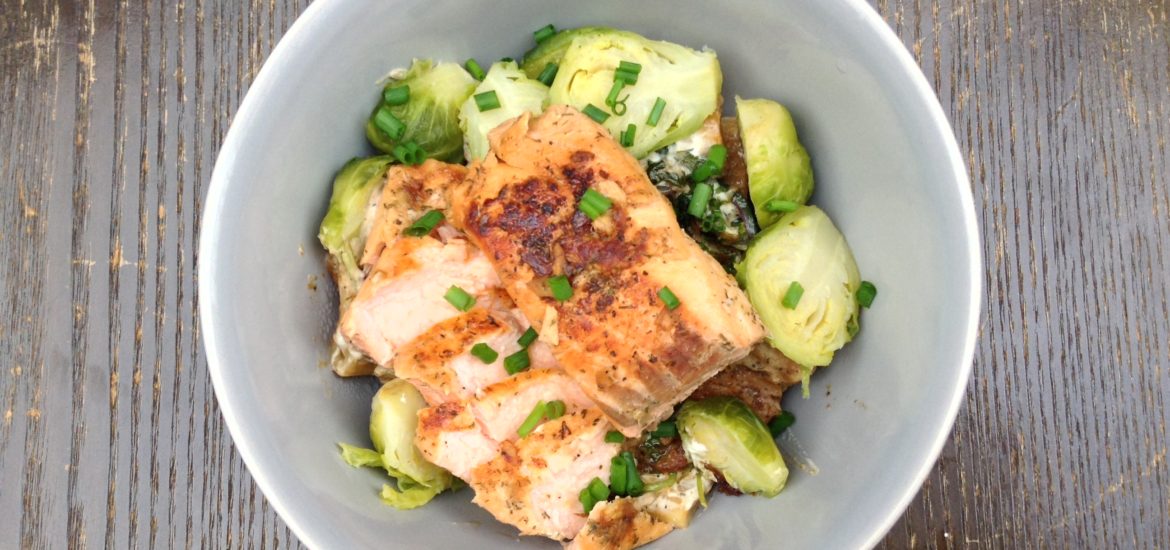 Salmon, pasta, cream cheese, dill and chives are a classic. I added Brussels sprouts, ginger, lime and soy sauce for a twist. Delicious and very healthy. You can eat this salad just out of the pan or put it in a lunch box and take it to the office.